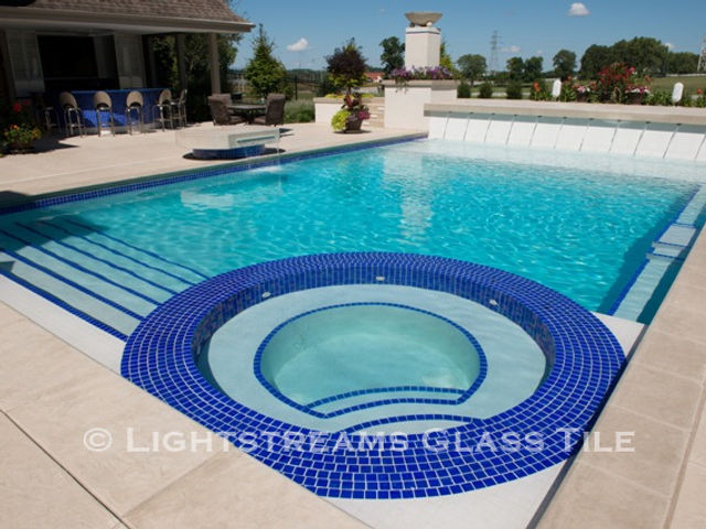 Renaissance Collection Intense Blue Glass Tile Spa, Waterline, and Step Markers