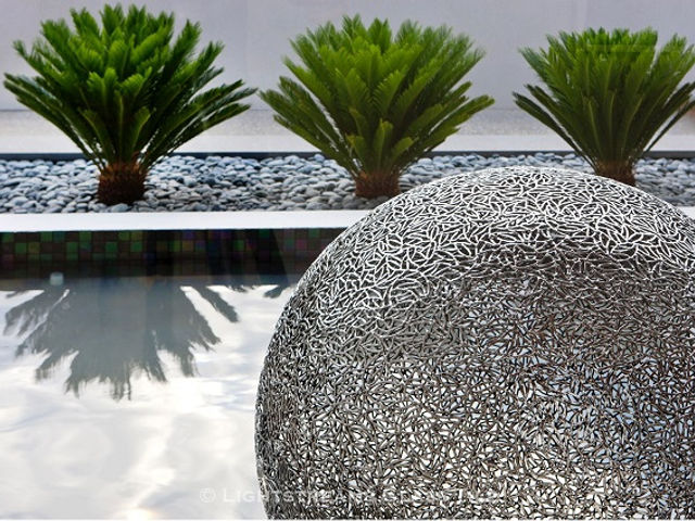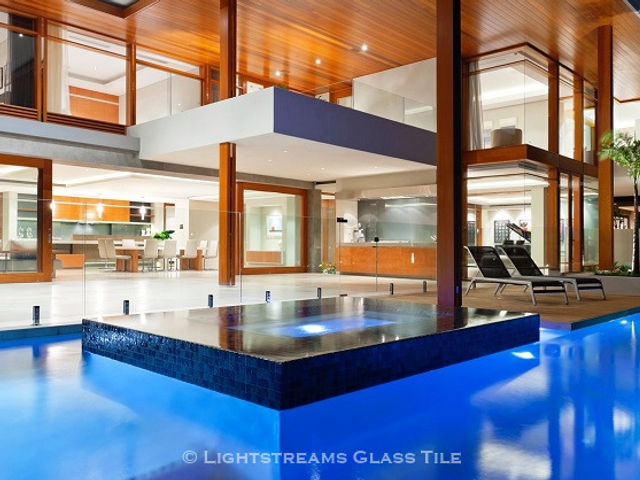 Lightstreams Gold Iridescent Collection Steel Blue is used for this all glass tile spa in Australia.