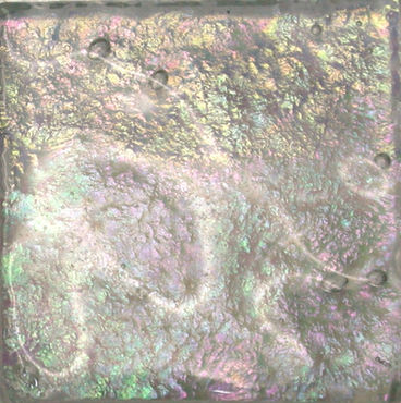 High quality American-made Lightstreams Renaissance Collection Misty glass tiles are clear, but will appear white once installed using the specified white mortar. The reverse, textured side of the tiles will display faint rainbow iridescent colors.